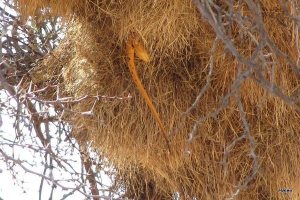 The sociable weavers never fail to fascinate. And their nests boggle their mind. How do these tiny birds construct such condominiums? Even the Pygmy falcons think they’re worth renting but although we examined the entrances for white-wash we didn’t find any evidence of tenants. Perhaps it’s the wrong time of year.
