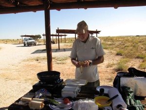 We stopped for breakfast at Auchterlonie and for the first time Earl could use his new toy! As there are no skottels for hire like in Kruger he decided to buy a portable gas stove that is packed in a neat plastic carrier case. Because it is square with the cylinder connected flat on the side, it cannot tip over. We got ours at Christie’s Sports in Diep River, Cape Town.