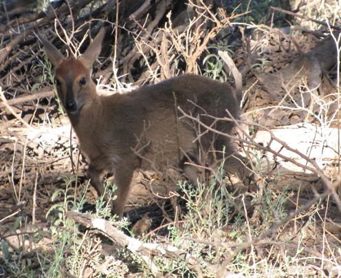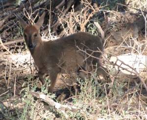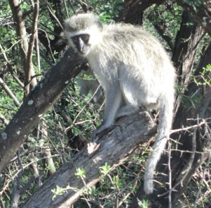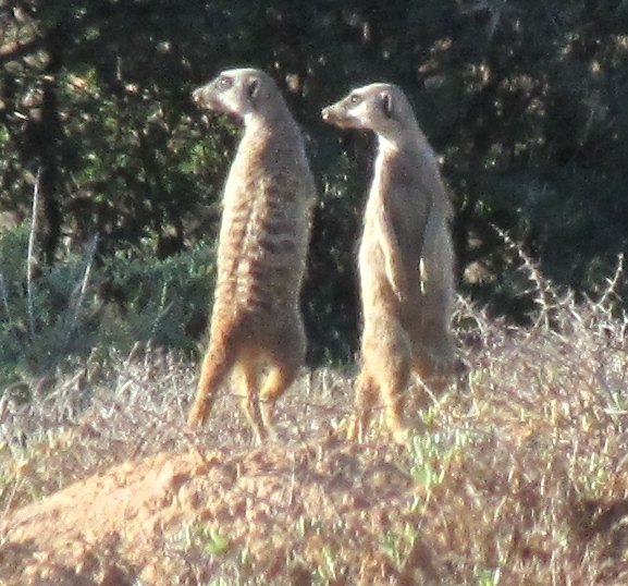 All the Karoo locals were there – adorable ground squirrels with their long bushy tails, meerkats (surricates) standing up straight and checking for predators, shy little duikers and steenbok, kudu with long curly horns, eland, zebra, springbok and scores of vervet monkeys which made us all shriek with laughter. We saw a variety of active birds too including ant-eating chat, karoo larks, pale chanting goshawks and a black-shouldered kite catching a mouse. The boys were delighted and Jay had fun with my camera and took some pretty good photographs.