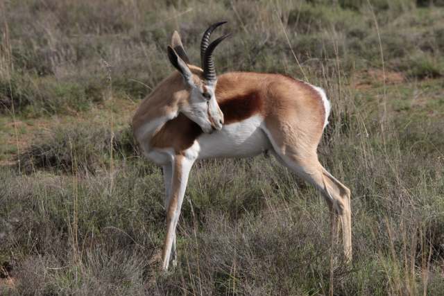 We went out again at quarter to five and were delighted to find Mountain Zebra, blesbok, eland, monkeys and buffalo as well as the other species mentioned before. Birds included grey-backed cisticola, blue crane, Cape Longclaw, Karoo robin, lots of ant-eating chat and Namaqua dove.