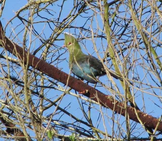 When the birds became active we woke Heather and spent a pleasant hour or two watching, Cape Batis, dusky fly-catchers, puff-backs, Knysna Turraco, amethyst sunbirds, double-collared sunbirds, rock thrush and others.   Janet woke up a little later and we then had breakfast. How lovely to enjoy it out on the deck.