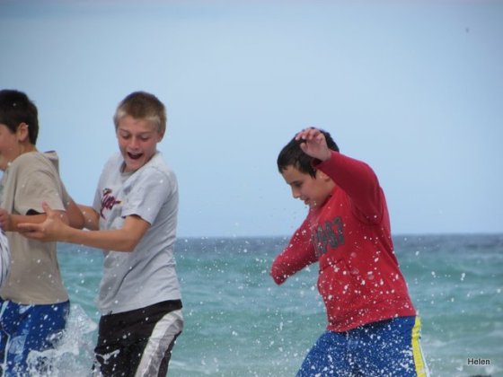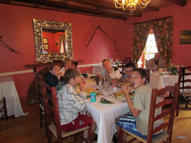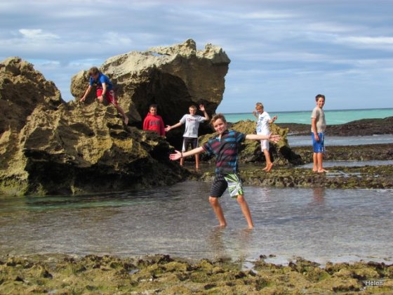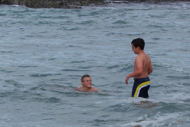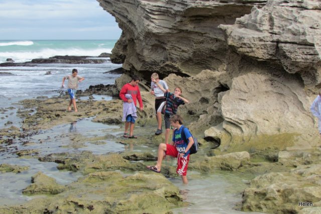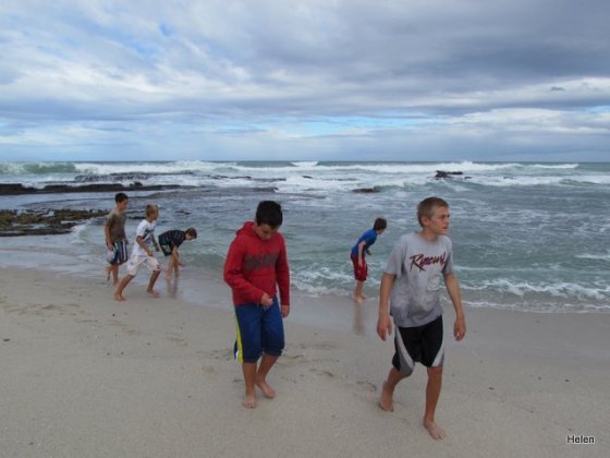 Although we’d told the boys to bring bathing costumes, towels and warm tops we really didn’t expect them to swim! Yes – rock pools, perhaps they’d catch a klip fish or two – but walk to the end of the rocks and allow waves to splash over them – NEVER. Unfortunately Leo took his towel across the rocks with him and it too became drenched. When I saw the waves splashing over them I was convinced they’d be washed out to sea and ran to yell at them to come back – but Earl opened one eye and said – Leave them – they’re boys!