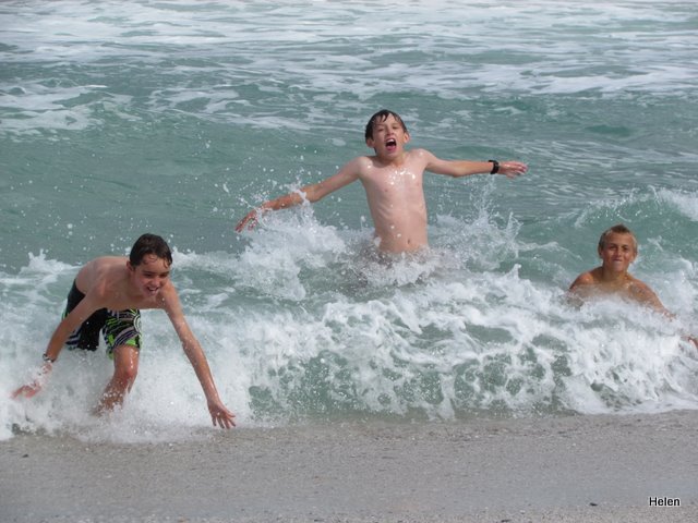 Eventually they did come back to the beach and then all headed straight into the sea. Brrrrr They seemed not to realise that sane people do not enter the sea if it’s below 18⁰C! They splashed and played and swam and dived and there was no getting them out for at least an hour.