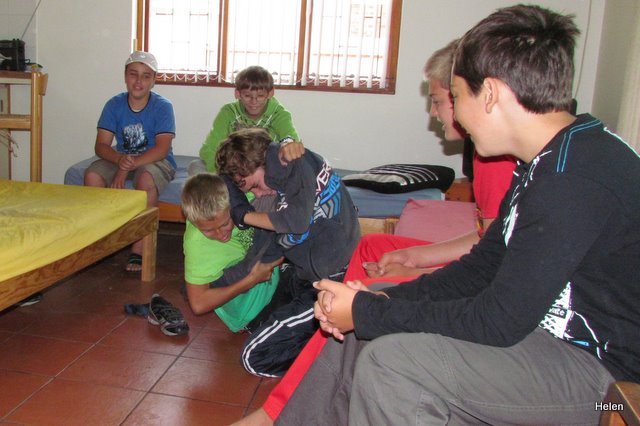 I don’t quite understand why boys find it necessary to indulge in these contact sports but it seems to bond them and there are no hard feelings after the grappling. But I made it clear that such games would not be tolerated without adult supervision and refereeing, and weather permitting, it would be outdoors!