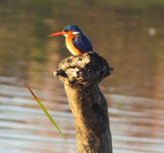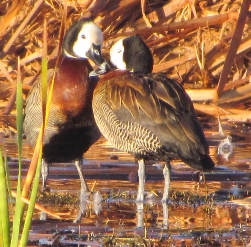 On Saturday night Evelyn called and asked if I’d introduce then to Rondevlei.  I needed no persuading although they wanted a very earl start to get the ‘soft light’.    I managed to convince them that leaving at 6:30 in winter was a tad too early so we set off at 7 and arrived at Rondvlei to the stillest morning and perfect conditions.  We were the first people to arrive and didn’t see another soul for two hours.   The activity in the hide was spectacular.  Yellow-billed ducks, white faced ducks, Cape Shovellor and Little Grebes which I prefer to call dabchicks, were swimming and fishing and interacting with each other.  Spurwinged geese arrived on the scene and a purple swamphen strode across the opposite bank in full view and showing his iridescent colours but was disappointingly too far for good photographers.  “I’ve seen him right here in those reeds,” I said pointing to the area on the left.  The words were no sooner out my mouth when Evelyn said, “Look – there’s one here now!’  The cameras clicked excitedly as he preened and posed and looked at his reflection in the water.  A little malachite kingfisher also dropped by and perched on a stick before flying into nearby dry reeds.   So much was happening and my friends with their state of the art canons were loathe to leave to explore the other hides.  I left them to it and did a quick reccie to see if it would be worth getting them to move on – definitely it wasn’t!.  On my return I bumped into two bird club members who joined us in the hide.   Then the wind got up and it became extremely cold an unpleasant.  We packed up and went to the car for hot coffee and rolls and then I suggested SIBA and met with nil resistance.  It was a good move as in spite of the wind the birds were out in their droves.    But the flamingos were conspicuous by their absence.  Usually they’re on almost every pond and last time they were flying around all the time.   “Perhaps they’d were leaving and haven’t returned.”   But then we found them – all on one pond in a large flock of a few hundred.  K and E were over the moon and took some wonderful photies.  I was freezing in spite of reasonable insulation but K and E seemed oblivious to the icy blast that blew in when the Caravelle windows and doors were open and were happy to brave the elements outdoors too.   “Its all worth it for a good photograph.”  And good photographs we all got.  Keith was impressed with what my Canon Powershot SX30IS can do.  He is even considering getting one for Evelyn.