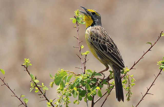 As we travel on we stop periodically when flocks of little birds swoop down to strip the grass of their seed. Among them are blue waxbills, firefinch, sometimes golden-breasted buntings and green-winged pytilia.