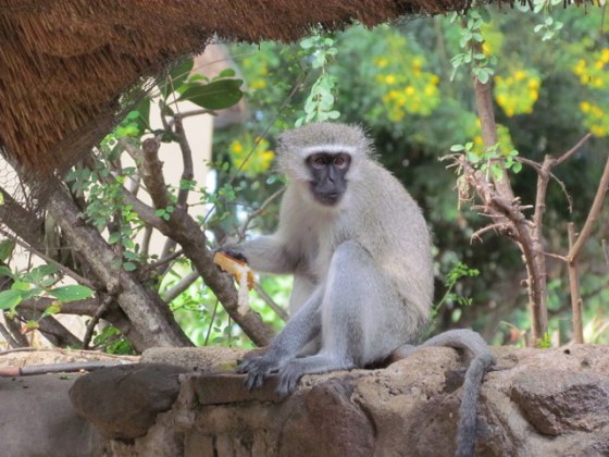 Nkulu is on a river bank and we love stopping here. The only problem is that the monkeys are rather naughty and you have to be very careful that your breakfast isn’t stolen. Our attention was distracted by a green-backed heron on the opposite bank when our order was placed on the table. Fellow tourists yelled a warning when a cheeky Vervet snatched half a toasted cheese sandwich from Joshua’s plate!