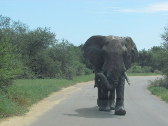 The elephants could not let us off lightly today – a rather angry looking bull decided not to make way for us as he trundled down the middle of the tar road. We had to reverse until he found a place that suited him to get off the road. A lovely adrenalin rush to end the day!