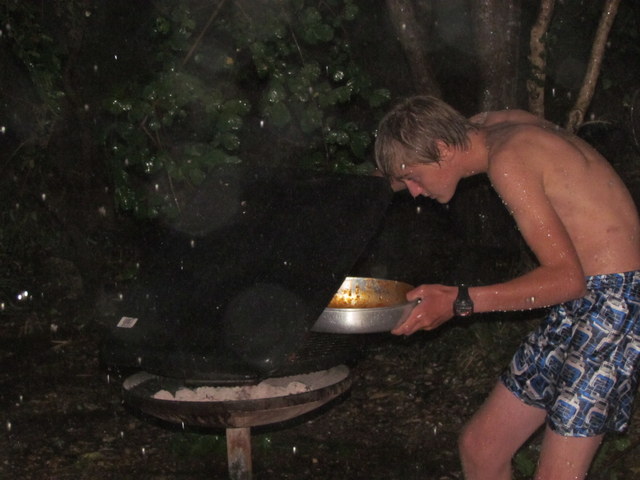 A thunder storm cooled things down this evening but put rather a dampener on our braai. Jay stripped to his waist and used a storage box lid to prevent the fire from going out while he finished off cooking our chicken.