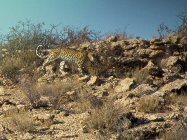 We came across a small traffic jam and the occupants of the cars were staring up the dunes. At first we did not see what the fuss was about and then we caught sight of a leopard heading to the ridge. We managed to follow him with our binoculars for a few minutes and then he disappeared over the edge. He was the only leopard we saw this trip.