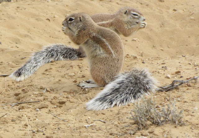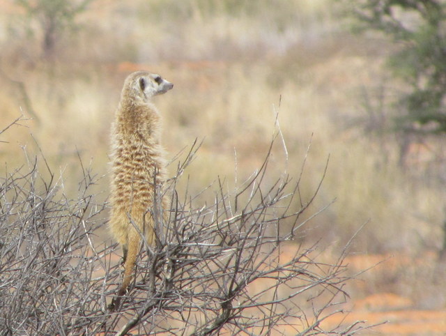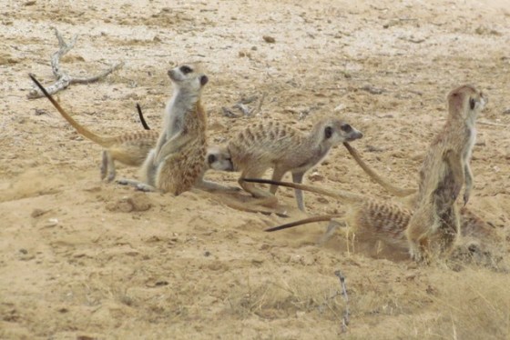 Heather, Peter and I packed up and loaded the car and by 9 o’clock it had warmed up a bit. Earl wanted to drive but I refused to allow that. The return track was a bit more hectic but with his careful instruction and my sound effects I managed. The Italians were just ahead of us and at one point we spotted them stopped up ahead. They had found meerkats close to the road!