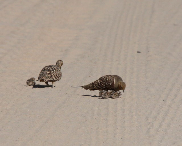 - An exciting find were these Namaqua sandgrouse parents with their chicks