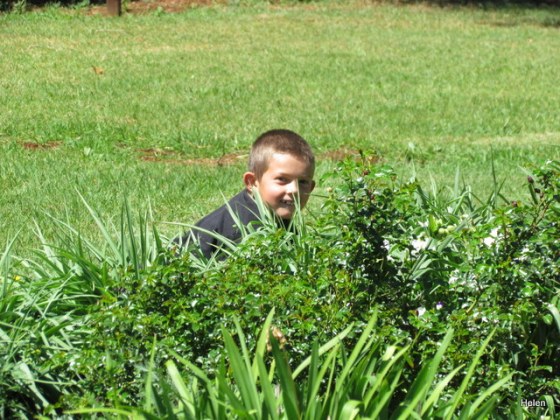 After the tour of the garden was over we went in for tea and gave the kids their presents.   Earl was pretty tired after all the driving and had a nap but I decided to sit in the sun and watch the grandchildren play while I read my book and chatted to Lauren.  When Grandpa woke up they all went out for a walk but I decided to stay in the sun and read my book – such luxury to do so after a long and hectic term.