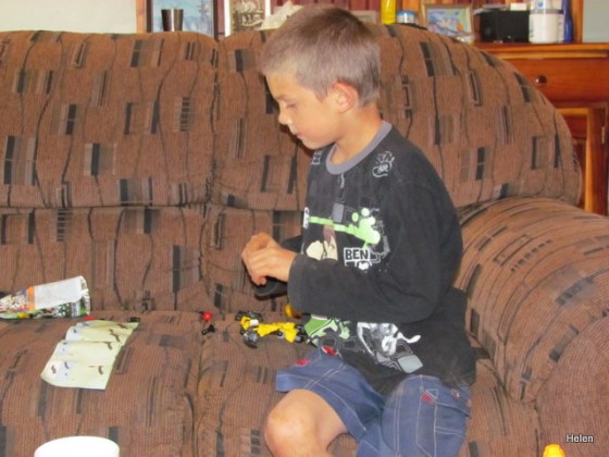 We arrived to warm welcomes from the dogs, horses, Shannon and Lauren.  But Simon decided to hide!   The promise of a present finally coaxed him from his hiding place and then we got warm hugs and declarations of “I missed you Granny and Grandpa!”