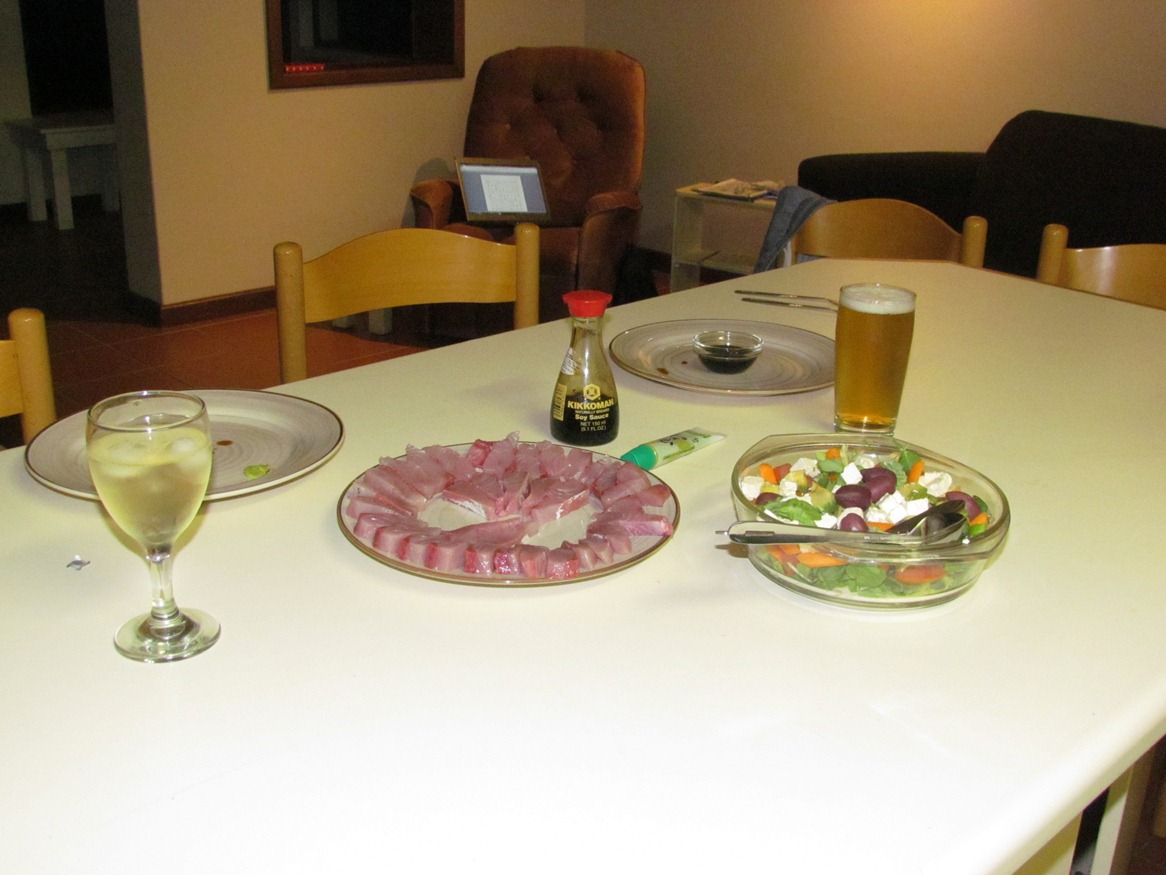 Earlier when the guys came home with yellow tail my first words were – Sushimi. And that is exactly what we had for supper tonight.