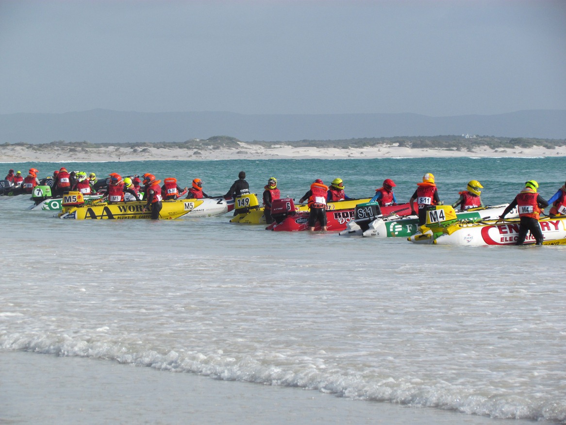Allan and Lauren did the early morning walk thing but I decided to lie in today. However, Lauren, Earl and I were all on the beach with the kids by 7:30, to watch the Trans Agulhas departure. A large crowd was gathered to see them off. Lauren and the kids found a spot to park off and watch while Earl and I found good vantage points to take photographs. Just before the start all the competitors knelt down on the sand while prayers were said for their safety at sea.
