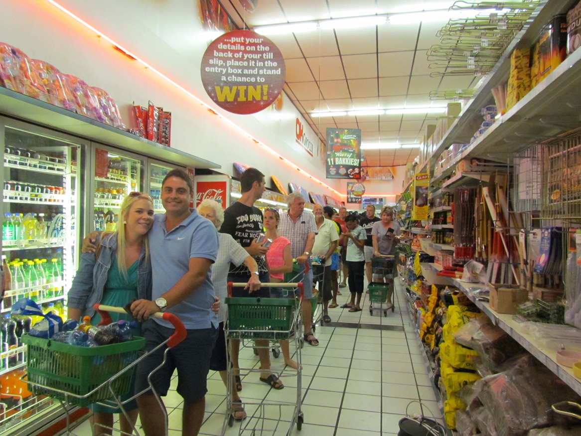 Earl and I then went to do some shopping. When I first came to Struisbaai in the early 80s there was but one very bad shop but now the town offers nearly every facility you need – there is a small mall, restaurants, a nursery, small clothing shops – beach-wear mainly – pharmacy, doctor and dentist. For most of the year it is still a fairly sleepy fishing village which wakes up over Easter and Christmas when the stressed out city slickers hit its shores. It is during these times that the locals really have to work overtime in their businesses and they do! The supermarket – OK Grocer – is amazing. They are open from 7 am to 7 pm and tonight being New Year’s eve they are open till 10! The queues in the place are extraordinary, yet you do not wait for more than five minutes before getting to the checkout where extremely efficient cashiers assist you. Service is excellent, the boss is friendly and accommodating and it is clear that his staff are well trained and happy to be working for him.