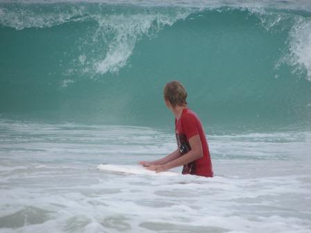 The weather today has not been that great with the north westerly bringing overcast conditions, but after an afternoon of inactivity we decided to take the kids for a swim at 4 o’clock. I’m glad I took a chair and a cardigan because I did not go into the water! The ,kids, however, had the time of their lives. The waves looked pretty terrifying to me but they thought they were just plain fun!