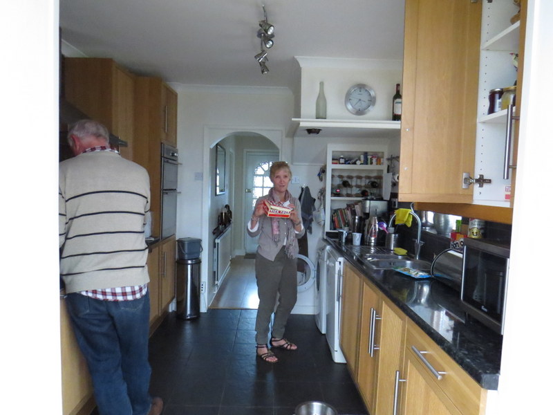 When we’d finished exploring the Market we all headed for London Bridge tube and returned to Waterloo. The others went straight to their trains and Paddy and I followed after I picked up my luggage. It was a half hour trip to Stoneleigh and a short walk to Paddy’s house – once again dragging a trolley bag and holding up a brolly.
