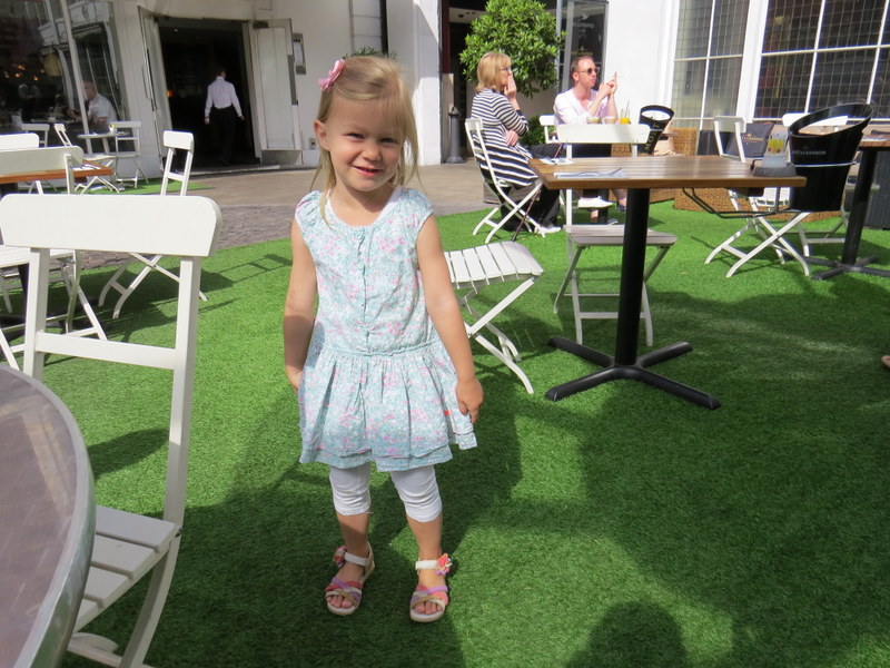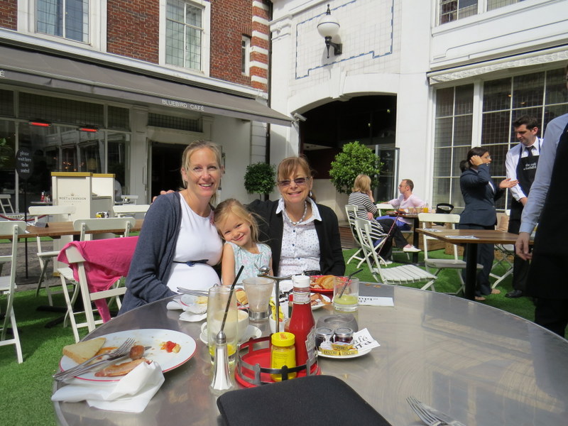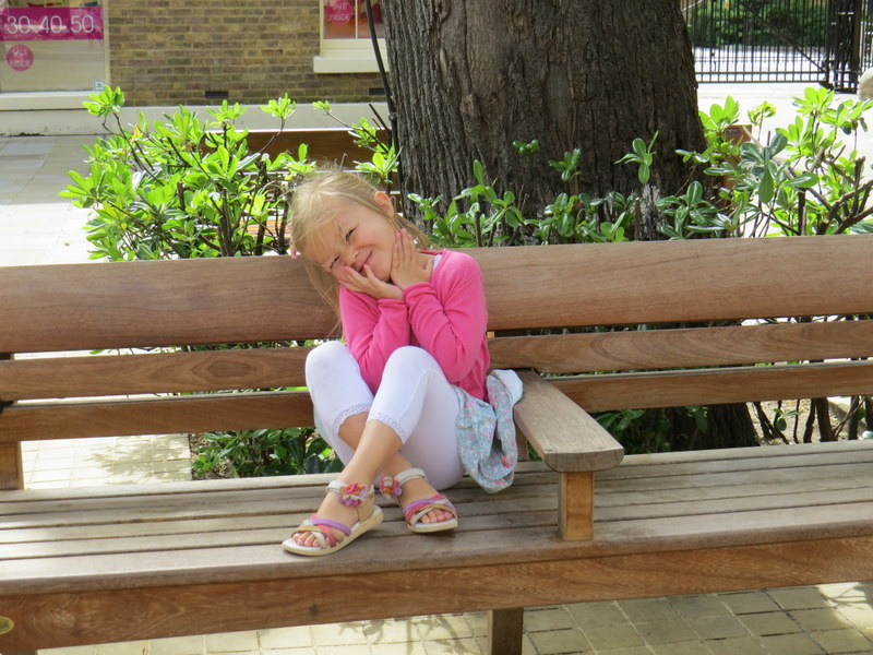 After breakfast Craig went off to do some things in the area and Martine drove us to a nearby shopping area.  She found a place to park and we walked and popped into shops and I really got the feel of Chelsea.   Little Olivia certainly knows how to shop.  She picked out two bathing costumes – one a blue bikini – the other the cutest pink full piece.  The pink one is for me – my new brother can have the blue one.  She looked at the price – only 20 pounds she guessed.   She can’t read but she was almost spot on.  She wanted to go into every single shop and Mom had to tell her it really wasn’t necessary.   She picked out the best of everything but did not fuss when Mom wouldn’t buy anything.