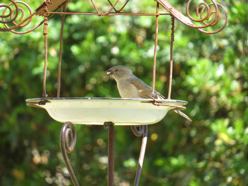 We enjoyed tea on the stoep but when the sun became too hot we moved into the shade of the oak tree.   The garden was abuzz with birds and we enjoyed watching them come to the feeding tables and birdbath.