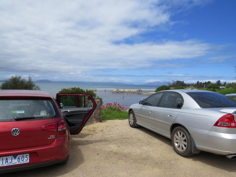 After checking into our pleasant rustic cottage that has everything we need we went off to the local grocery store and were amused to find that even the parking area had a view of the sea!