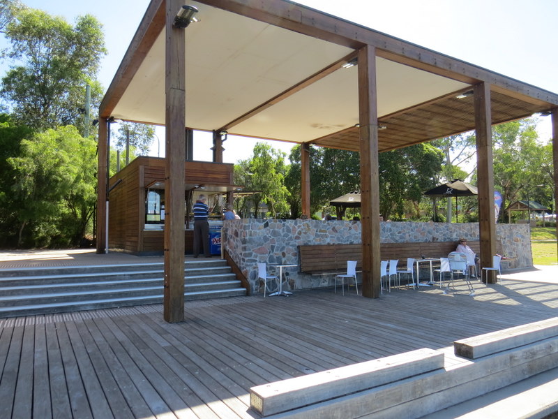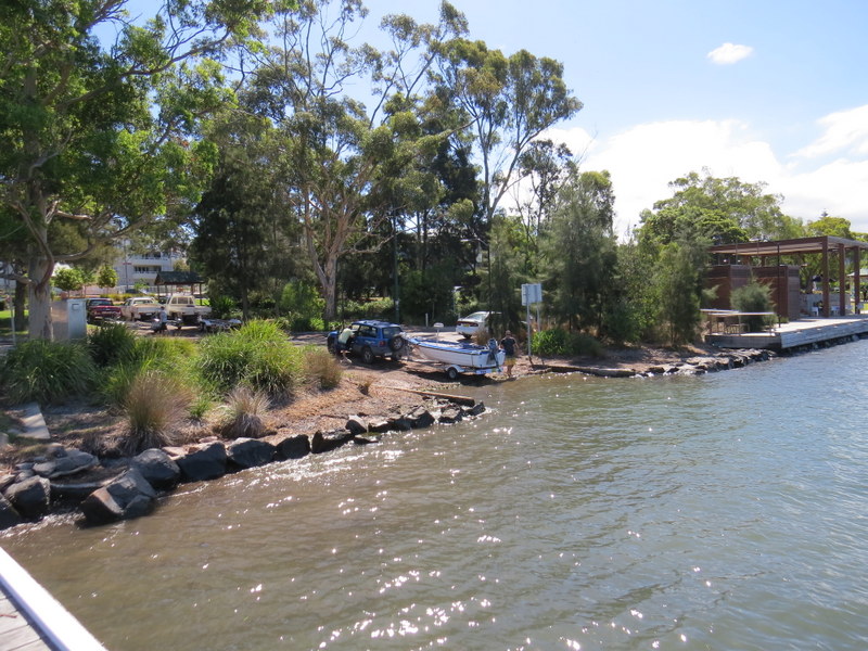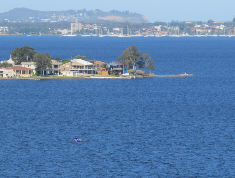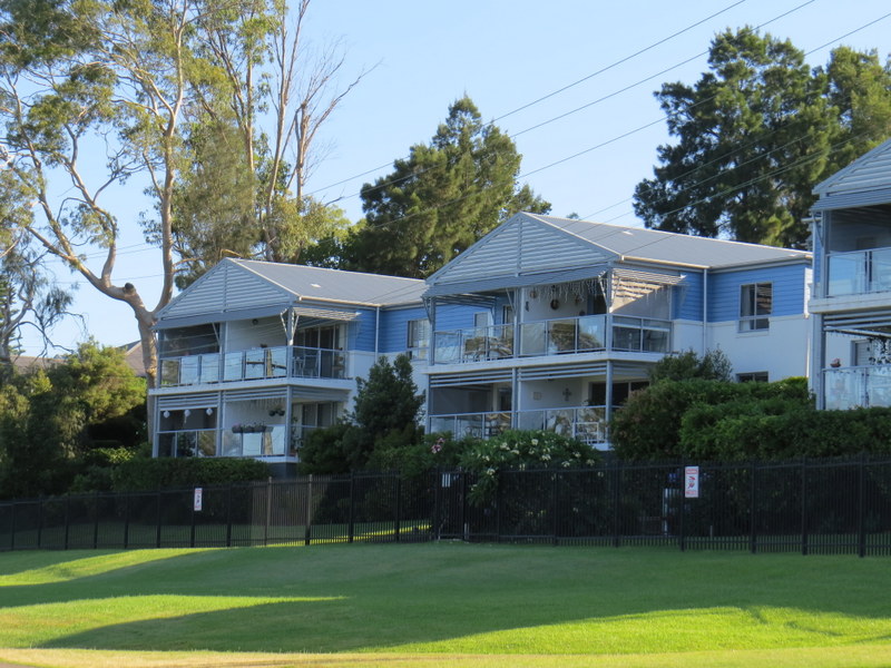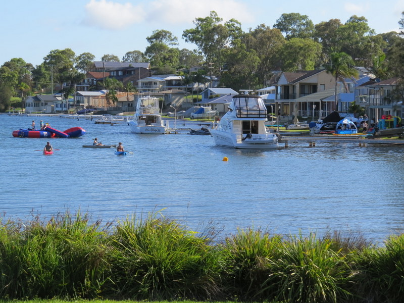 At Arcadia Vale people were enjoying paddling in boats and playing on rubber rafts.  It’s an idyllic spot and we saw pelicans flying over, a heron on the bank and pink and grey galahs pecking for food on the lawns.