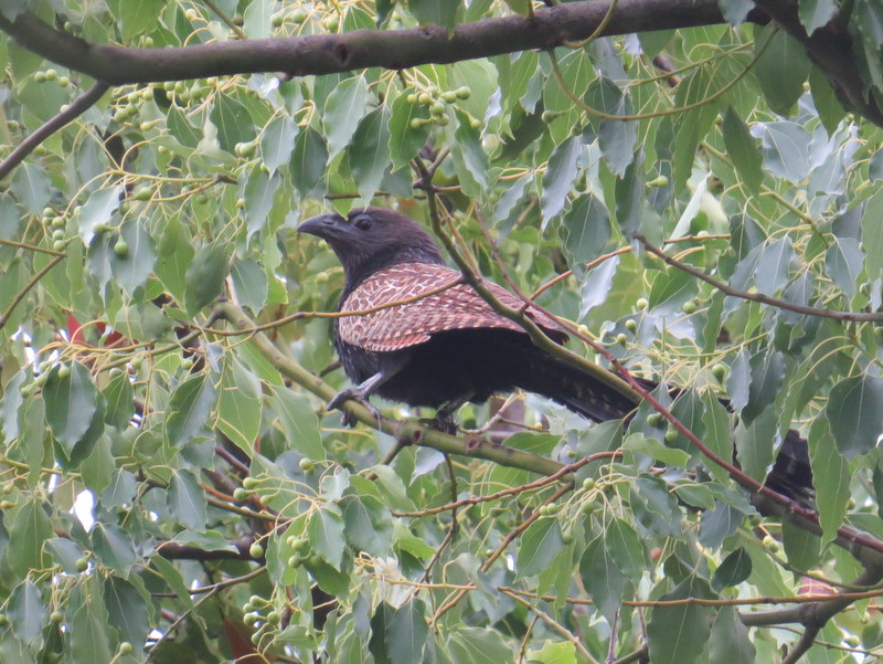 Before the rest of the household awoke, Earl and I crept out for one last attempt at finding the Pheasant Coucal that we saw two weeks ago.   It was cool and overcast so our chances were favourable.   The birds were active but there was no sign of the coucal until Earl sensed a movement and turned to see the bird quietly perched in a distant tree.   Usually this birds calls but today he was silent.   The bird flew off and then obligingly perched quite close by enabling us to get some good shots.  It was a good end to our time in Cardiff.