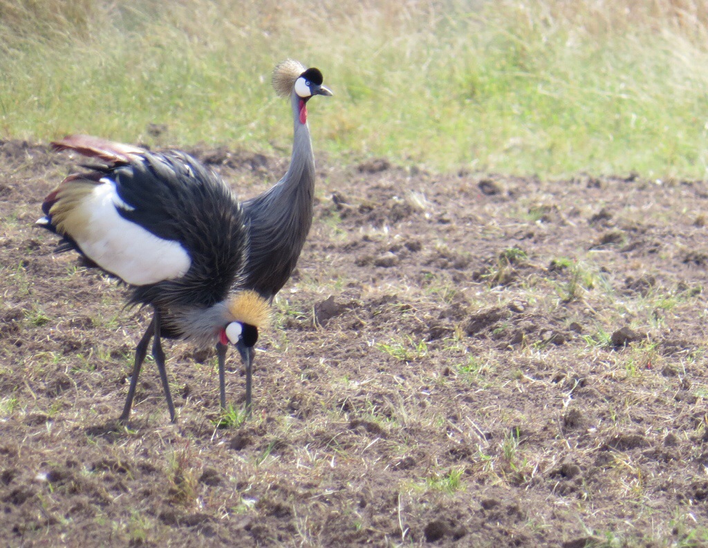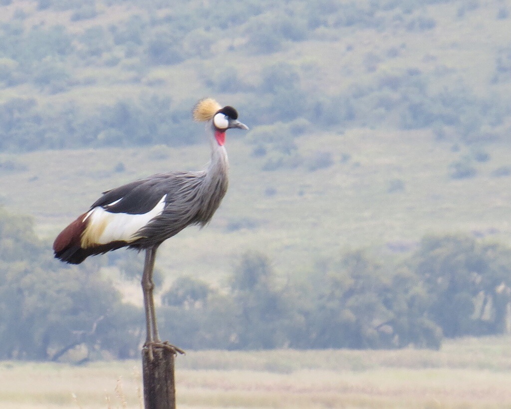 As we approached Nicoline’s we saw a huge flock of crowned crane on her property. They took off and circled and then settled in the field behind the dam. As soon as we could we made our way quietly towards them. The land was boggy and I squelched through a particularly muddy section to get some good shots. I was dressed in a skirt and sandals. The latter had to be removed. What was I thinking. When on the farm dress as the farm girls dress!