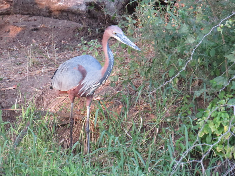 We couldn’t have chosen a better time to visit. The hide was full but we Heather Peter and I found a spot together and Earl was slightly round the corner. We have wonderful views of Goliath Heron, pied kingfishers and a mother and baby hippo. The baby couldn’t have been more than a week old and Mom was so protective. There were no other hippos about.