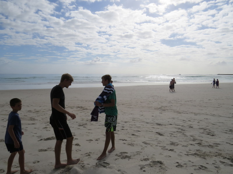 Before the hijinks began we rallied the troops and headed for the beach. It was overcast but there was not a breath of wind and the sea was as calm as a millpond.