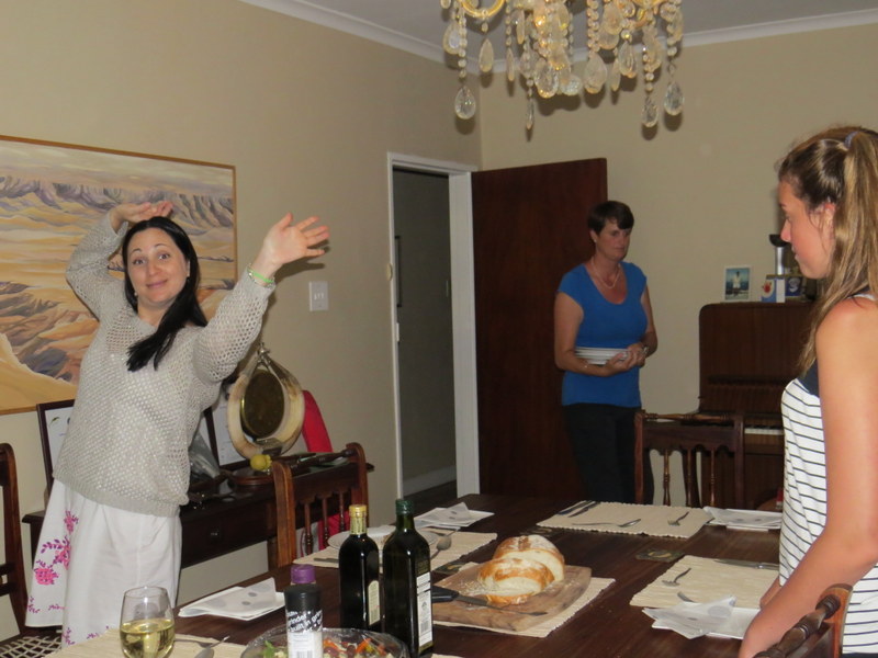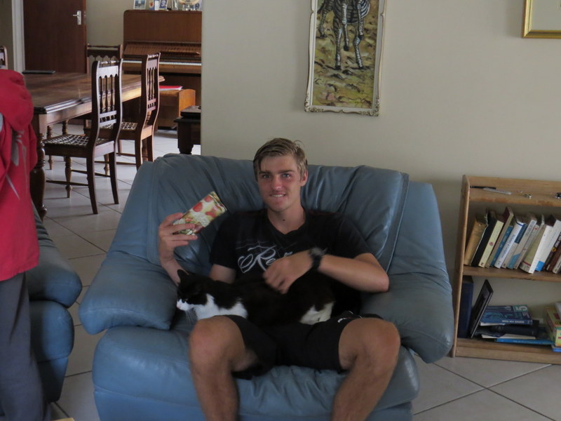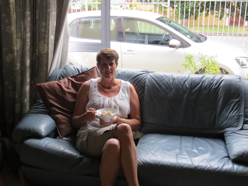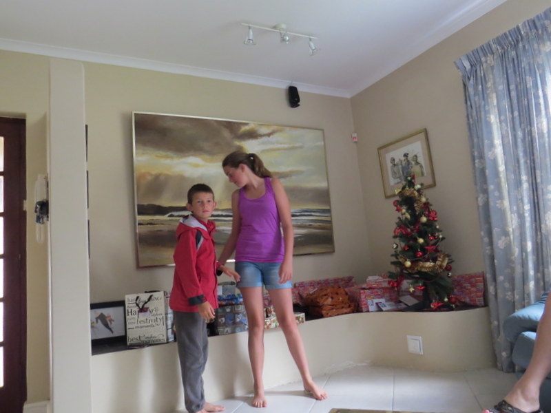 The weather was not what one would expect for an African Christmas.  It was raining and when we lamented Jay said, “Think of it as Snow at Christmas!” Actually it was quite pleasant not to have baking heat specially as we were having a hot roast lunch.  Earl did Greek lamb with delicious vegetables, Lauren did the glazed gammon which turned out beautifully and she’d never done one from scratch before.  She also made a chicken liver pate which we served as a snack with drinks before lunch. I compiled a starter of smoked katonkel – a gift from Gus – and made the salad.  The kids all pitched in to help with odd jobs and by the time Great Aunty Carol, Great Uncle Vere and Uncle Greg arrived everything was ready.