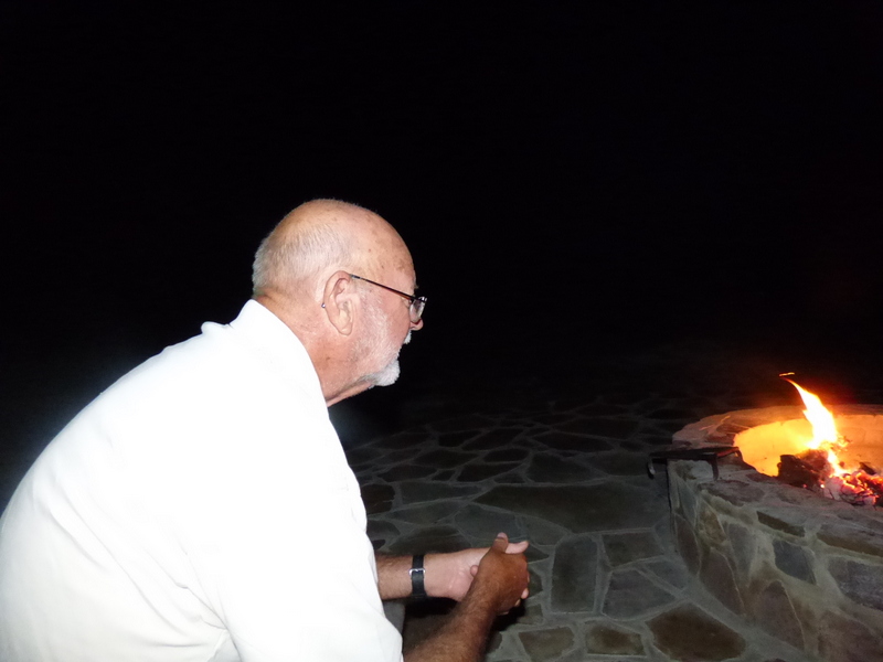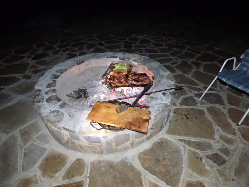Supper is a grand affair. We gather around the braai and Abrie makes a mushroom sauce from fresh brown mushrooms and a speciality dried one soaked in wine. With the added cream it is delicious. This is served over the most delicious beef I have ever eaten – it is taken from the forequarter of a jersey cow and is amazingly tender and tasty.