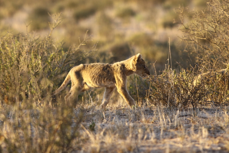 We spot at speed for a while and get Jackal, White-backed vultures and gemsbok before Jim and Maureen stop at 7:00. What do they see – then I spot them – 3 female lions and a tumble of the tiniest kittens. I call them kittens because they are the tiniest cubs I have ever seen. They must be only a few weeks old. Other tourists are turning their vehicle round to follow them and one chap teases us – “Why don’t you turn round and follow too!” If only!