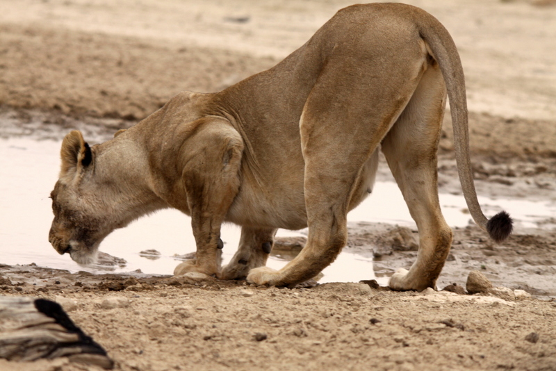 We follow her to the KOUSANT waterhole. She is quite unconcerned about us and we watch her mark her territory and then go down to the waterhole to drink.