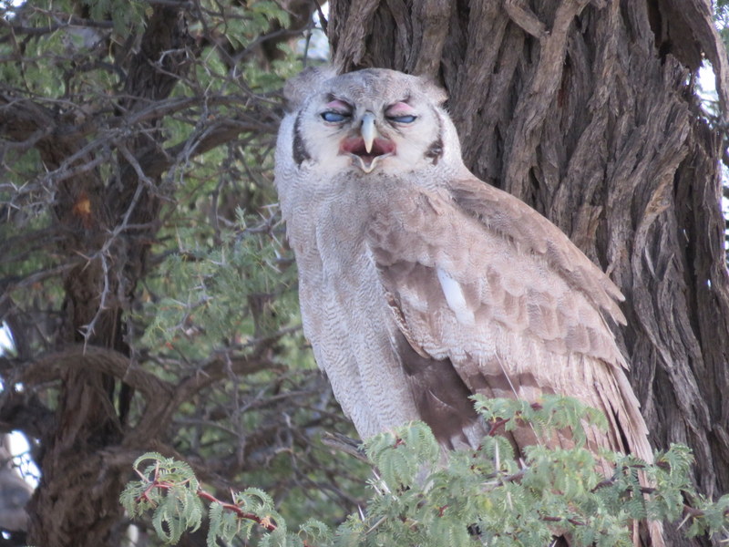 We are up early and it looks like we will be having a fine day. First up we find an owl in the tree next to the waterhole. I think it must be a juvenile as it letting out a high pitched scream as if calling for Mom.