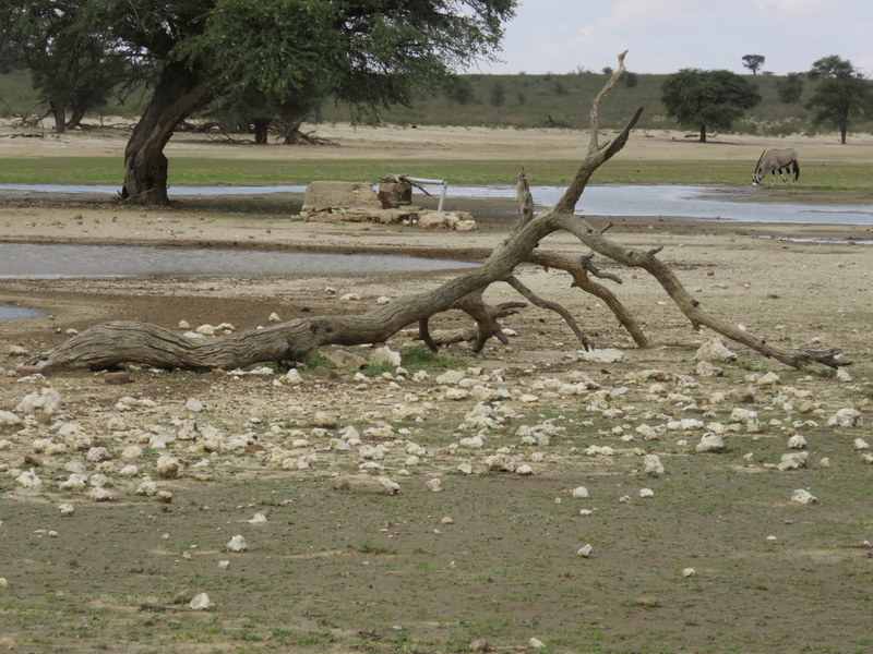 We go south all the way to Nossob 60 km away. There is still a lot of water on the road and we see very little game.