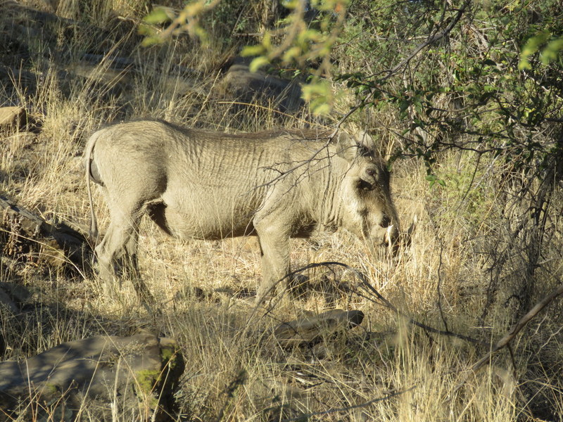 We unpack and have a cup of tea and then go on a journey of exploration.  The list of game includes warthog, giraffe, zebra, red hartebeest, eland, jackal, wildebeest and kudu.  Erich is delighted when our first spot is a single wildebeest and red hartebeest together!  We follow a 4×4 trail and find all the species except eland, zebra and jackal.