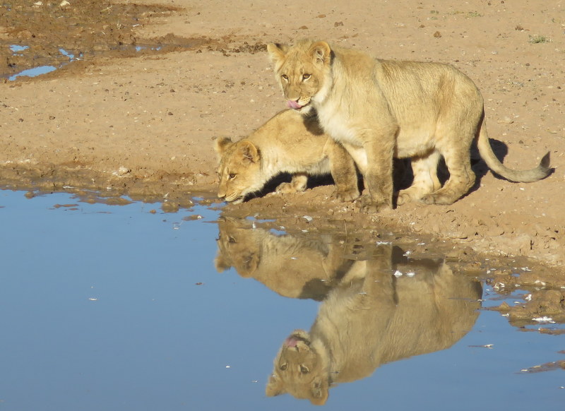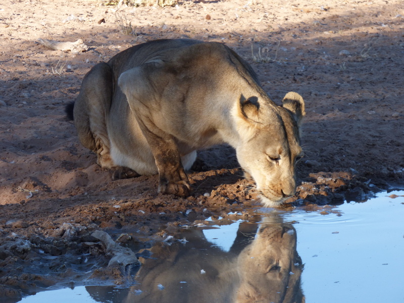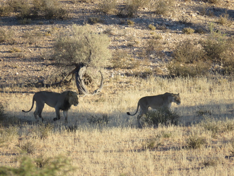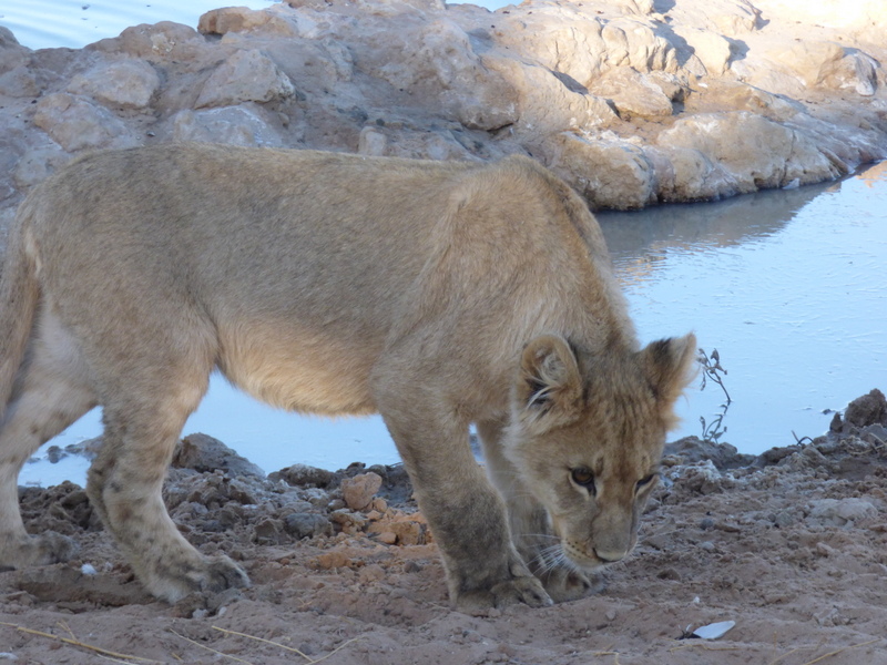 Earl is sitting on the deck when he suddenly yells – lion – he runs to fetch Wendy and Erich and we watch a male and female come down to the water hole.