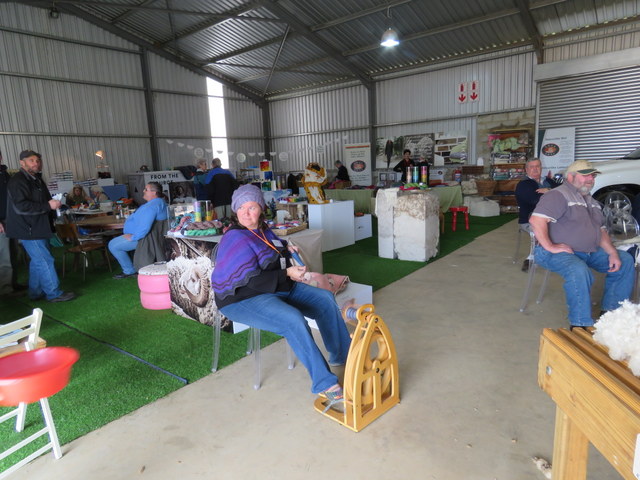 We found ourselves in the shearing shed where they were talking about wool in Afrikaans and there was a woman spinning which fascinated me. She allowed me to take a photograph of her and then I went to browse the products while Earl watched a champion shearer shear a huge male sheep. I missed that (so no photos) because I got into conversation with the spinner who had the loveliest range of wool and cotton yarns – Nurturing Fibres
