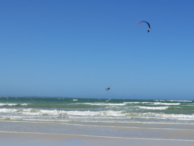 Weekends in Struisbaai are just an extension of the week and sometimes I don’t even know what day it is. But I listen to the radio more than I ever did before and was alerted to the fact that there is a Rugby World Cup on the go and that the Bokke were playing Japan today. After our usual chores and faffing about we decided to go for a walk on the windy beach at about 3ish today. We spotted several fans dressed in green in preparation for the game later in the evening. Of course we planned to watch but the scenes on the beach got our attention first. We complain about the wind and weather but for some the conditions are perfect for their sport. It’s just an attitude of mind isn’t it.