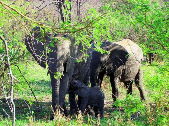 Our route took us alongside the river and we saw lots of animals and birds. Giraffe delighted us, impala were ever-present, some zebra rolled in the dust, and we watched elephants swimming and playing in the river.