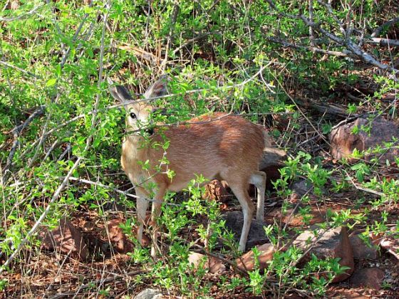 and to the left of our hut Eec alerted us to a klipspringer nimbly climbing up to a flat rock where he stood and stared at us, possibly wondering what kind of creature we were.