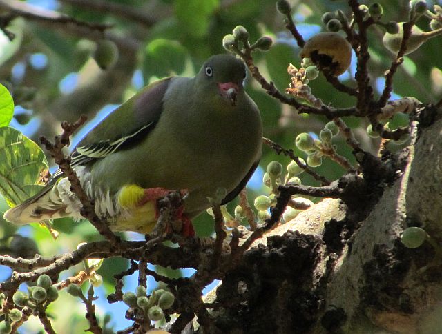 We unpacked and relaxed on the stoep for a while – although the heat was extreme. But we saw a Diederick’s cuckoo, a puff back with his white rump in full fluff, a green spotted dove strutting about,