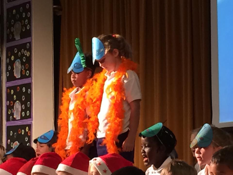 We have been learning all about the seasons so as part of our Grandparents’ Day the Grade Ones gave a stage presentation all about what we know about the passing of time and the changing seasons.   Each class was responsible for a season, spoke about it, said a poem and we all sang a song about the seasons too.