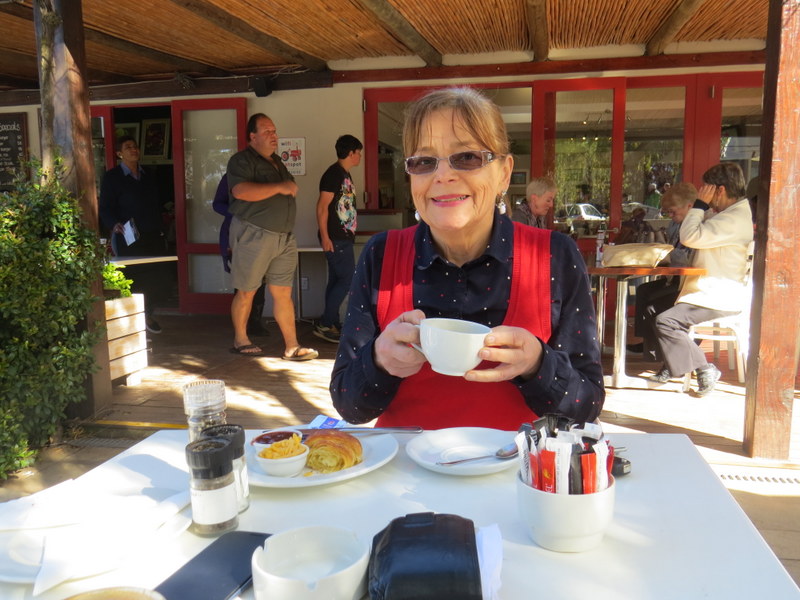 By the time we arrived in Gansbaai the wind had got up and was blowing strongly. We went to the Great White House for coffee and muffins/croissants. The patio area was sheltered and we enjoyed the sun on our backs and watched the sunbirds, weavers and witogies drinking at the feeder.