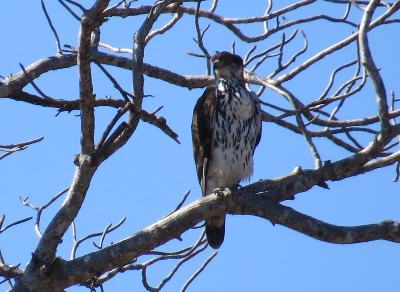 Then a hugely exciting spot for us – two birds of prey which at first we thought were Martial Eagles but on closer inspection we found that they were African Hawk Eagles – a really special sighing One was high in a dead tree and the other in another dead tree in front of it.