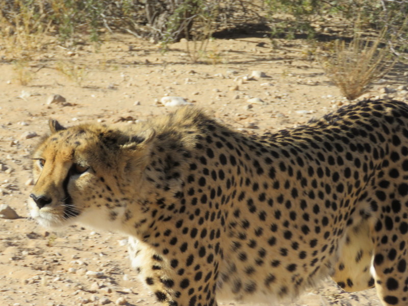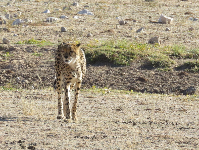 We continued on our way, delighted to have had 2 cat sightings in one morning.   There was not much excitement for the rest of the way but we did stop for birds and enjoyed seeing all the springbok, gemsbok, kori bustards – we counted 97 in one day – there must have been a Kori Bustard convention that nobody told us about.    Usually it’s very exciting spotting one but we had become quite blasé about these magnificent birds.