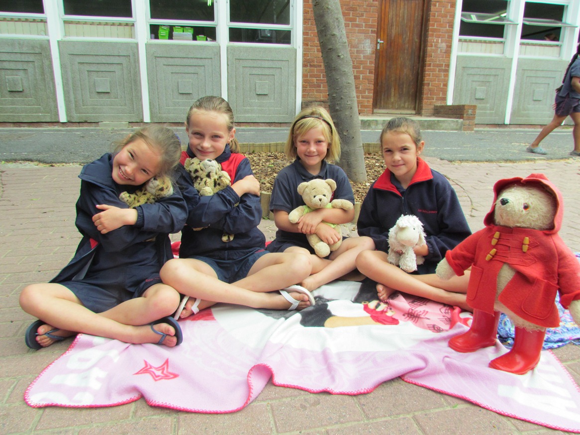 The girls were supposed to bring just one little treat each but some kind moms sent delicious eats to share too. So off to the Lapas in the quad we went with blankets and teddies and what a fun time we had. (Thanks Aunty Carol (my neighbour and volunteer rooom mom although she has no kids at the school) for running home for my memory card which I foolishly forgot to put back in the camera after downloading pics to the computer!