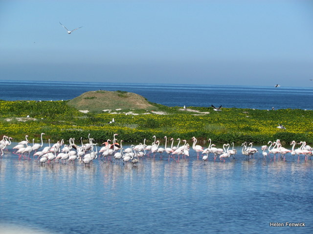 We stopped for a picnic lunch at the tern roost and watched the flamingos flying in and settling right in the pond right in front of us.